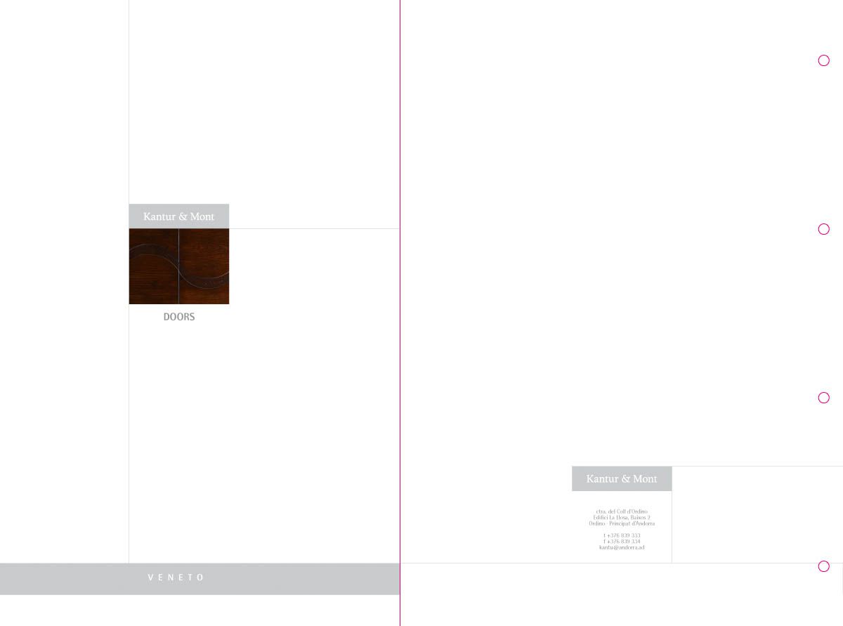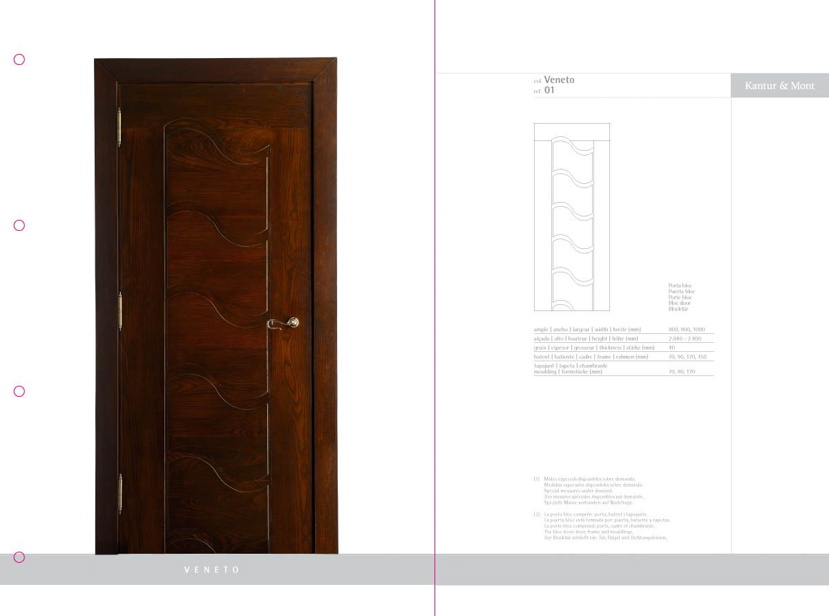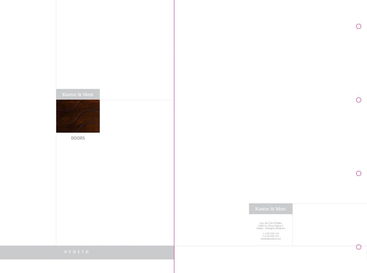 Desenvolupament d’un catàleg de producte com a eina comercial i mostrari de producte, a partir de la idea creativa original i la seva implementació en format de fitxes incloses en una carpeta d'anelles per a properes incorporacions de noves referències. El treball inclou la fotografia de les portes i detalls de producte.