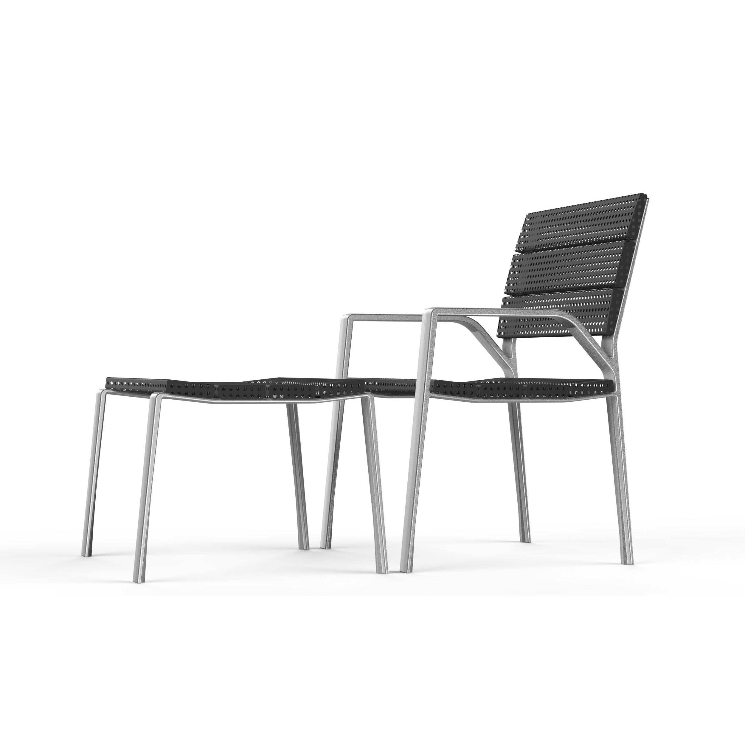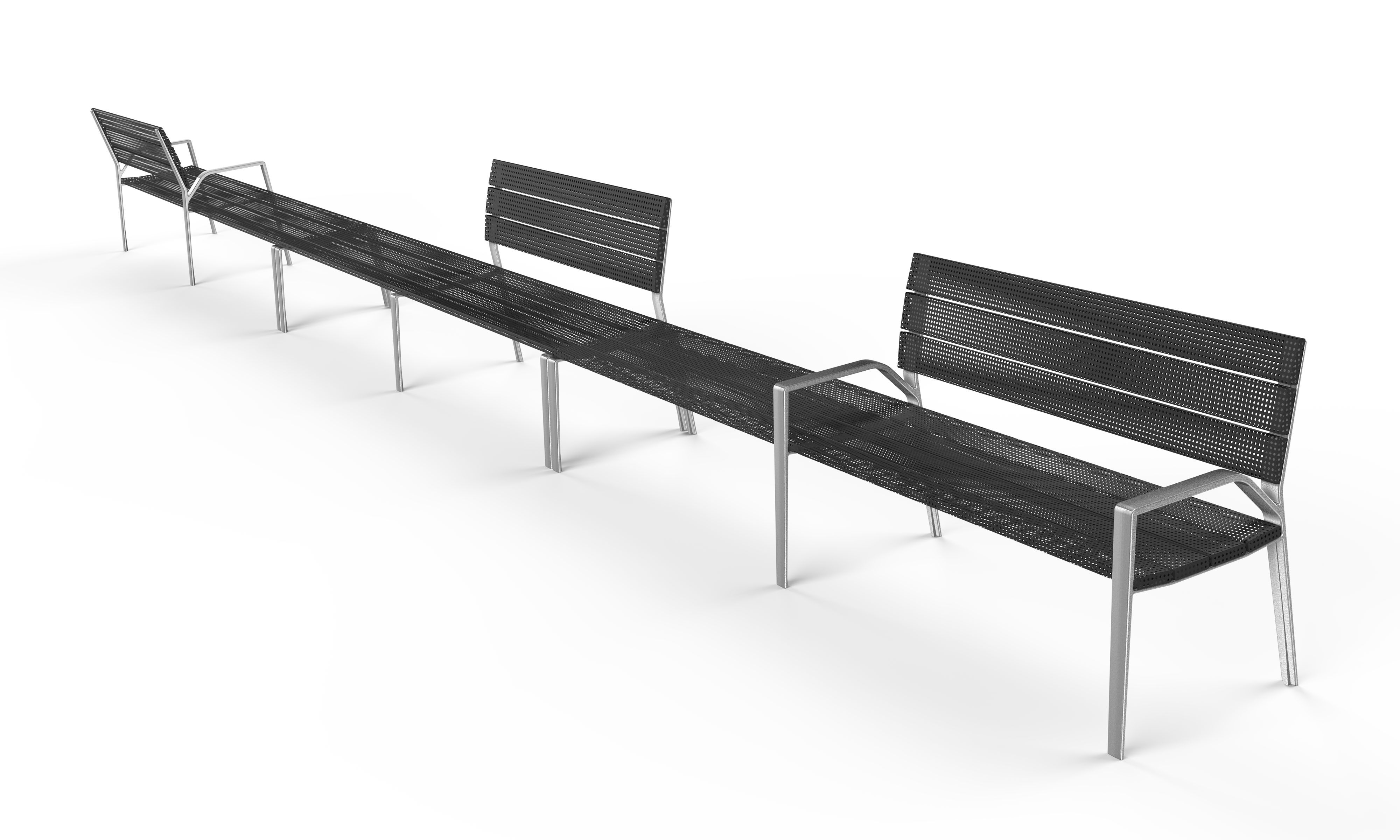 Concretament, es tracta d'un banc amb dos elements diferenciats. El primer, l'estructura bàsica i minimalista que es pot realitzar amb alumini, material 100 % reciclable, o ferro reciclat, i el segon, el seient que es pot realitzar amb ferro perforat o plàstic 100% reciclat, sense plàstic afegit.