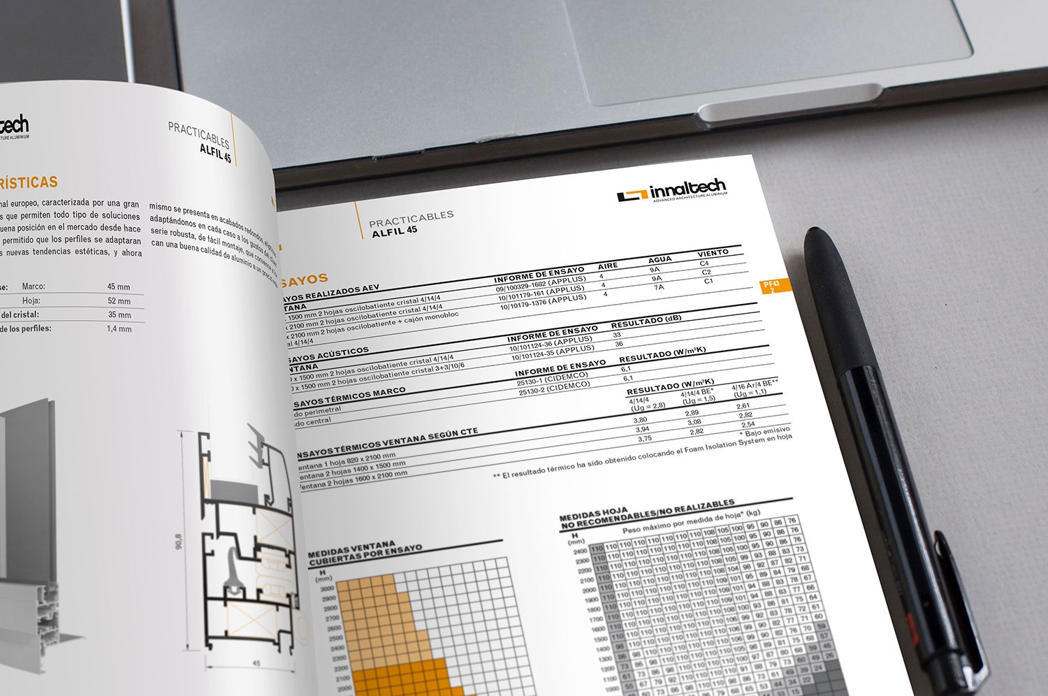 Se trataba de elaborar un catálogo de síntesis para profesionales del sector, para poder consultar las referencias de los productos de la marca de perfilería de aluminio Innaltech. Es un catálogo exclusivamente técnico y profesional que, al mismo tiempo, es la antesala de un conjunto de catálogos de detalle de cada uno de los diferentes productos. Por este motivo, el catálogo lleva el número "0".
